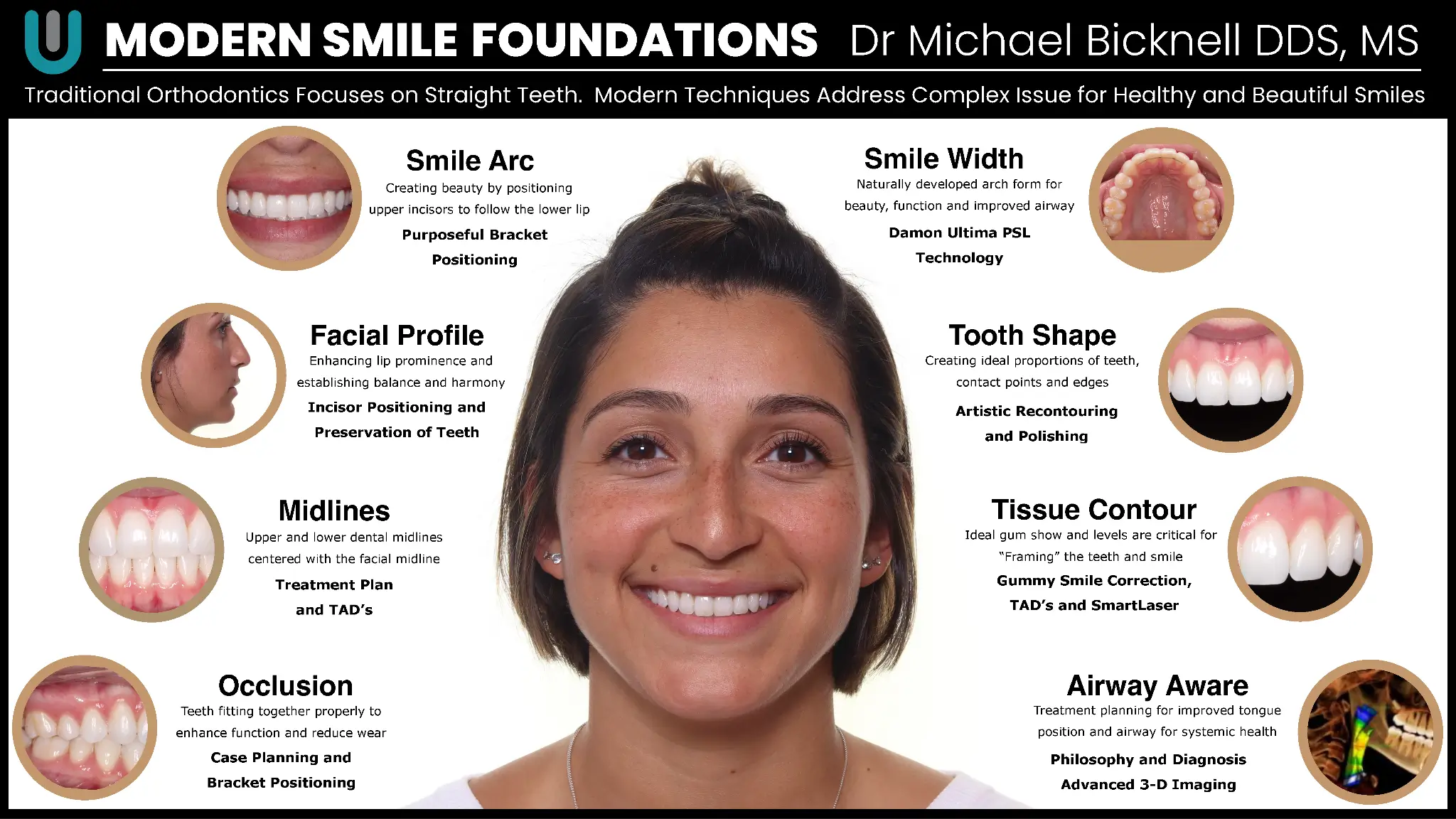 When evaluated systematically—beginning in the lower left and moving clockwise—the Modern Smile Foundations framework highlights eight interdependent pillars that define comprehensive orthodontic care. Each foundation influences the others, and true excellence occurs when they are addressed cohesively rather than in isolation.